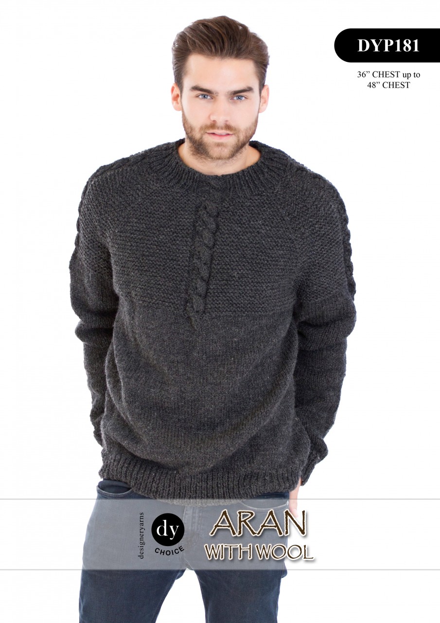Designer Yarns Choice Pattern for Aran with Wool DYP181 Mans Jumper 92 – 122 cm 36″ – 48″