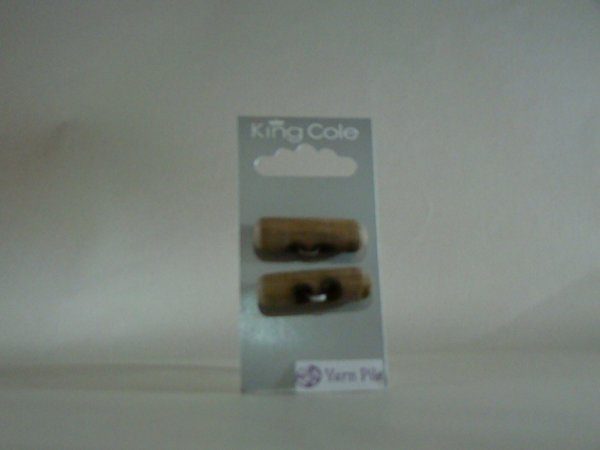 King Cole Buttons No 101 Card of 2 wooden toggle buttons approx 36mm long