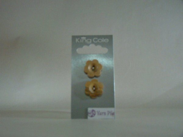 King Cole Buttons No 104 Card of 2 wooden flower shaped buttons approx 19mm