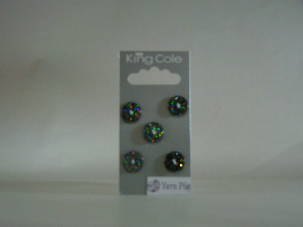 King Cole Buttons No 115 Card of 5 black glitter buttons approx 13mm