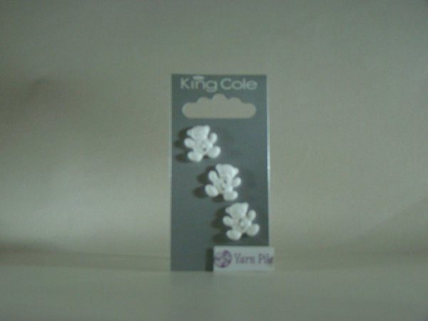 King Cole Buttons No 26 Card of 3 white teddy bear shaped buttons approx 15mm