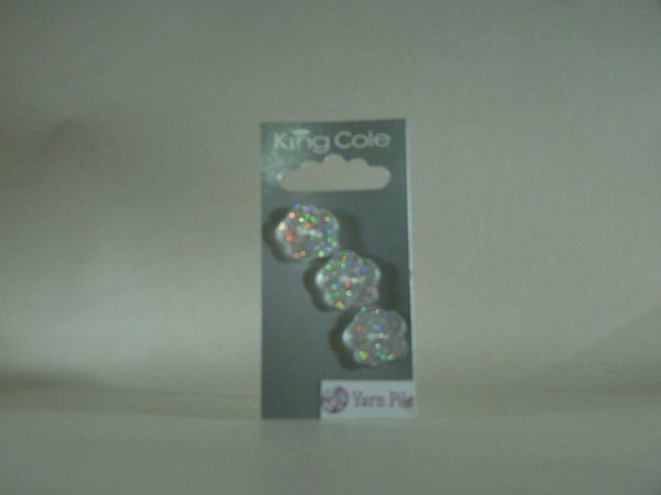 King Cole Buttons No 28 Card of 3 glitter flower shaped buttons approx 18mm