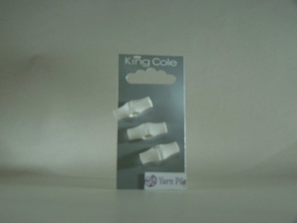 King Cole Buttons No 32 Card of 3 White toggle type buttons approx 25mm