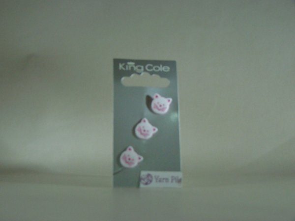 King Cole Buttons No 38 Card of 3 white & pink, cat head buttons apprx 12mm