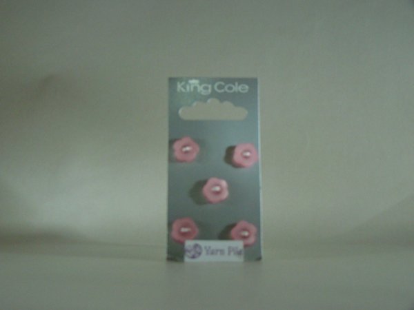 King Cole Buttons No 44 Card of 5 Pink opaque flower shaped buttons approx 12mm