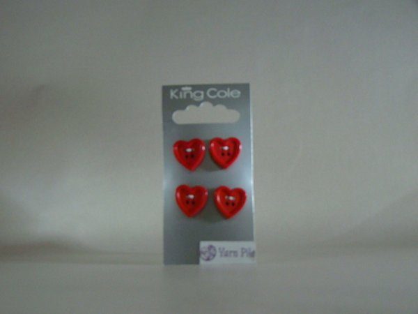 King Cole Buttons No 60 Card of 4 red heart shaped buttons approx 16mm