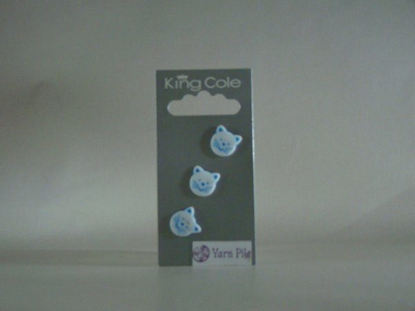 King Cole Buttons No 78 Card of 3 white & blue, cat head buttons apprx 12mm