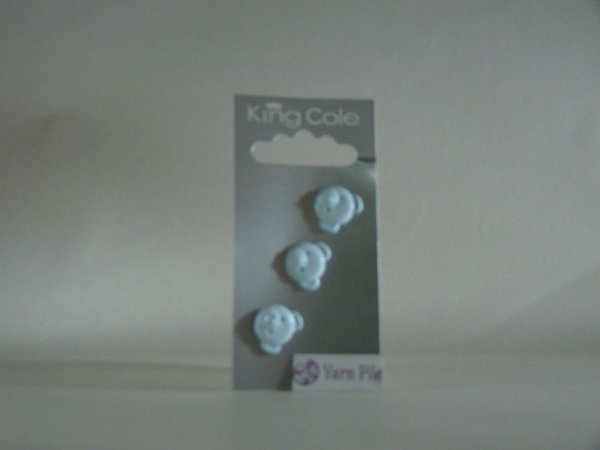 King Cole Buttons No 79 Card of 3 blue teddy head shaped buttons approx 16mm