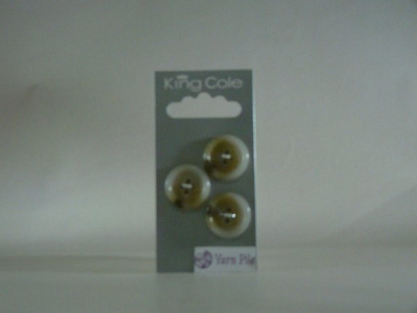 King Cole Buttons No 85 Card of 3 cream/brown buttons approx 20mm