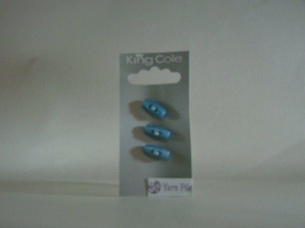 King Cole Buttons No 96 Card of 3 blue toggle buttons approx 10mm long