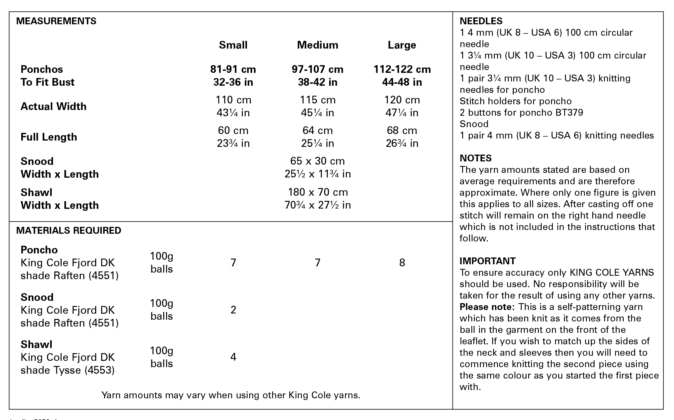 King Cole Pattern 5652 Fjord DK Ladies Ponchos, Snood & Shawl Easy Knit