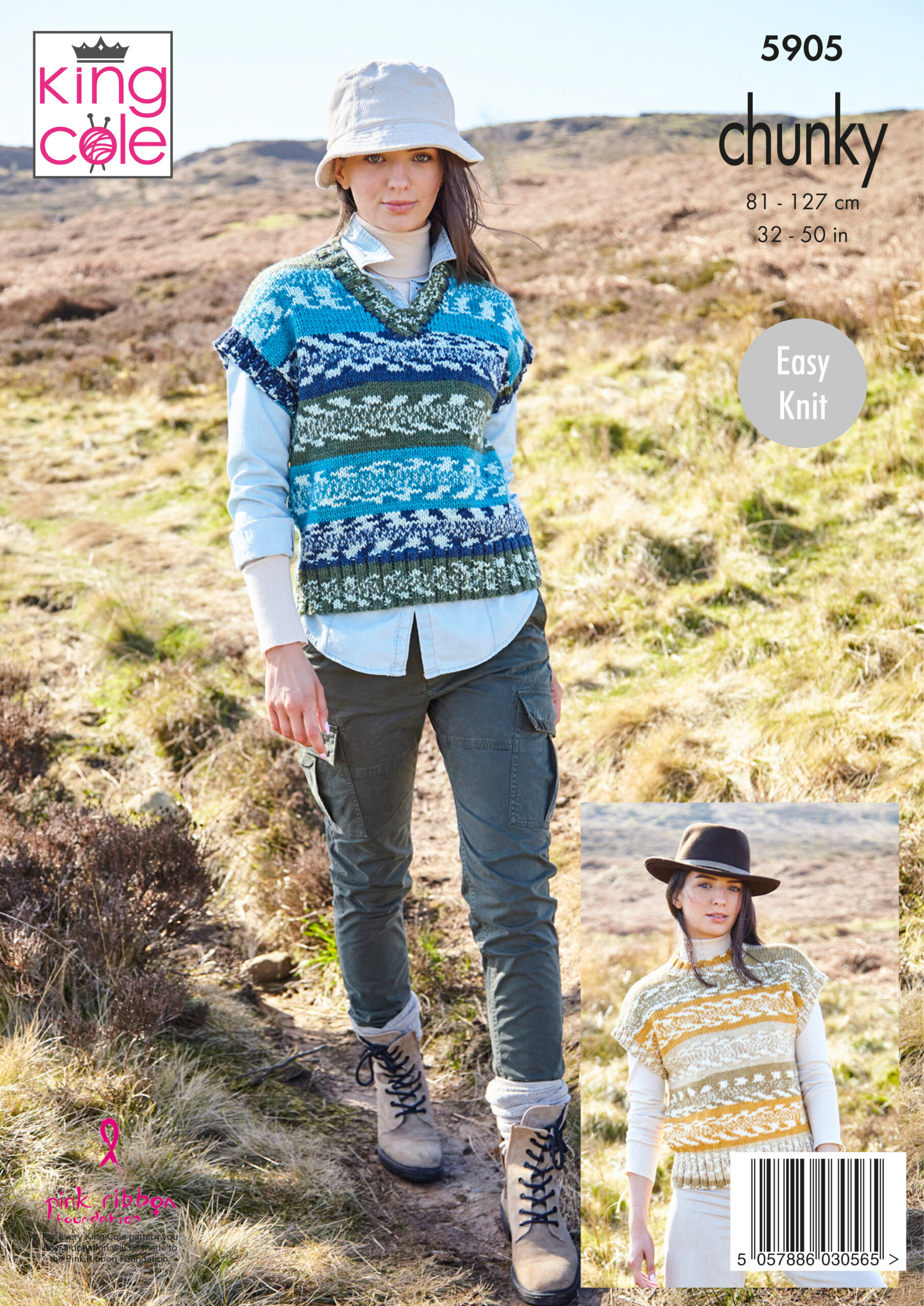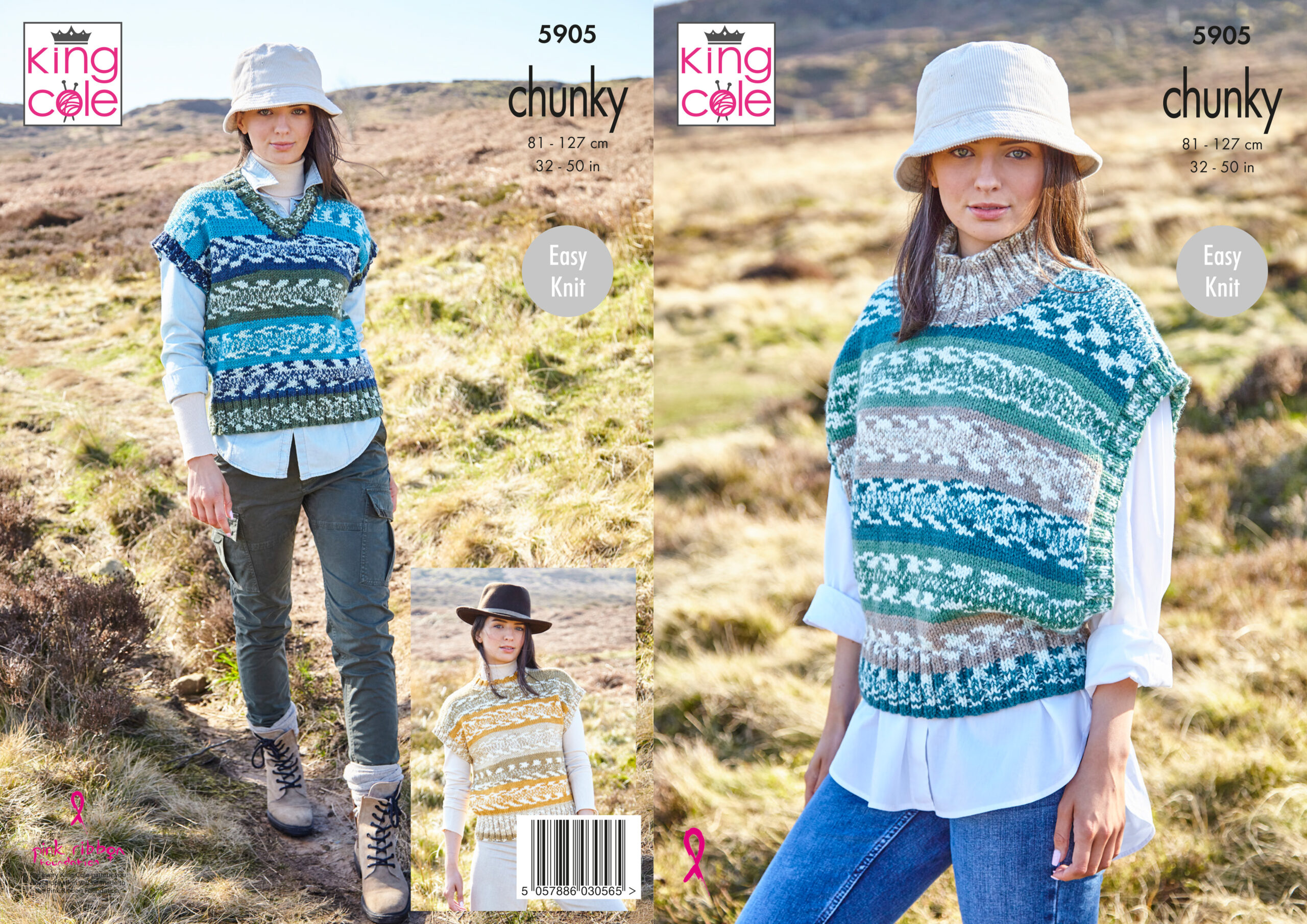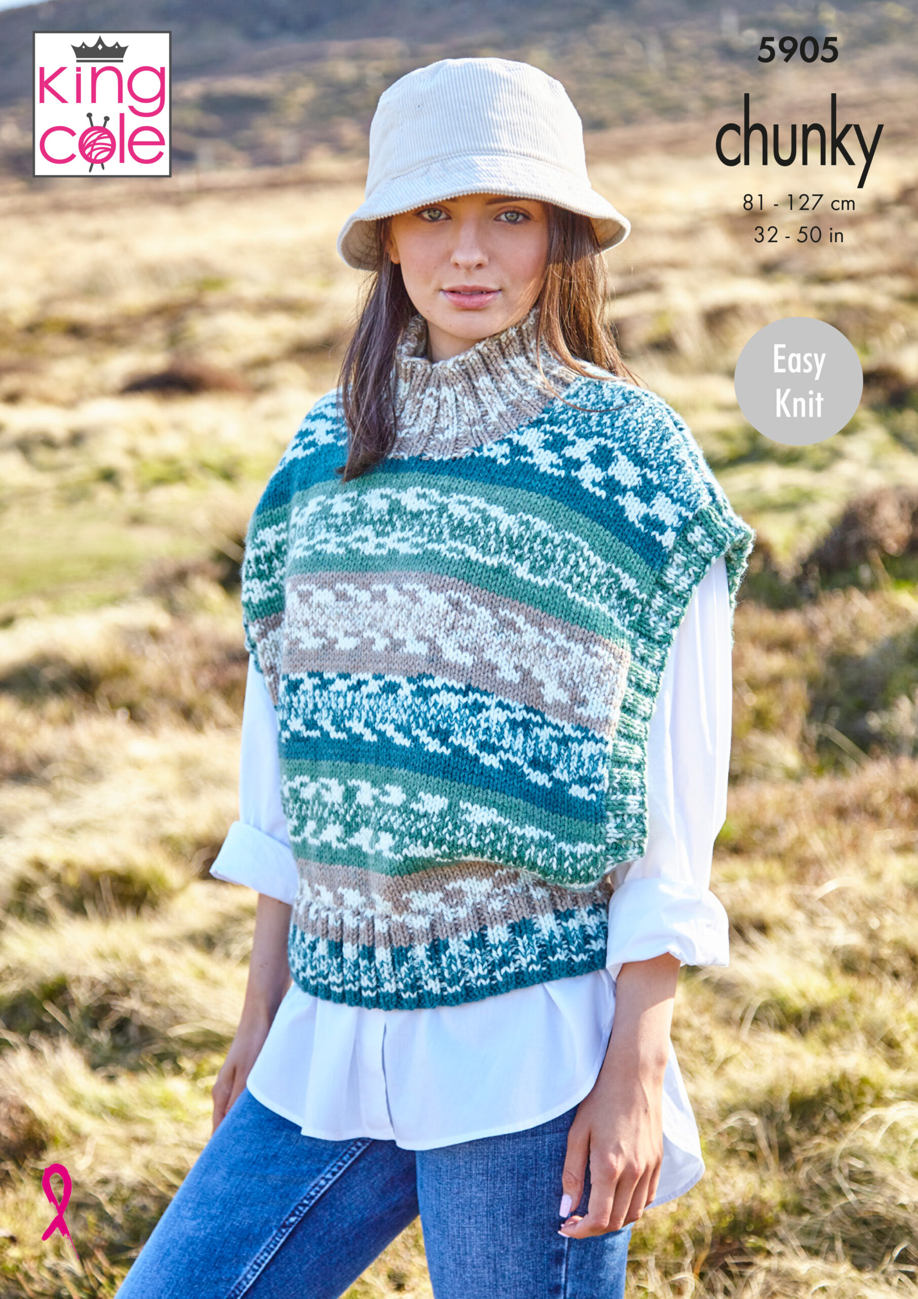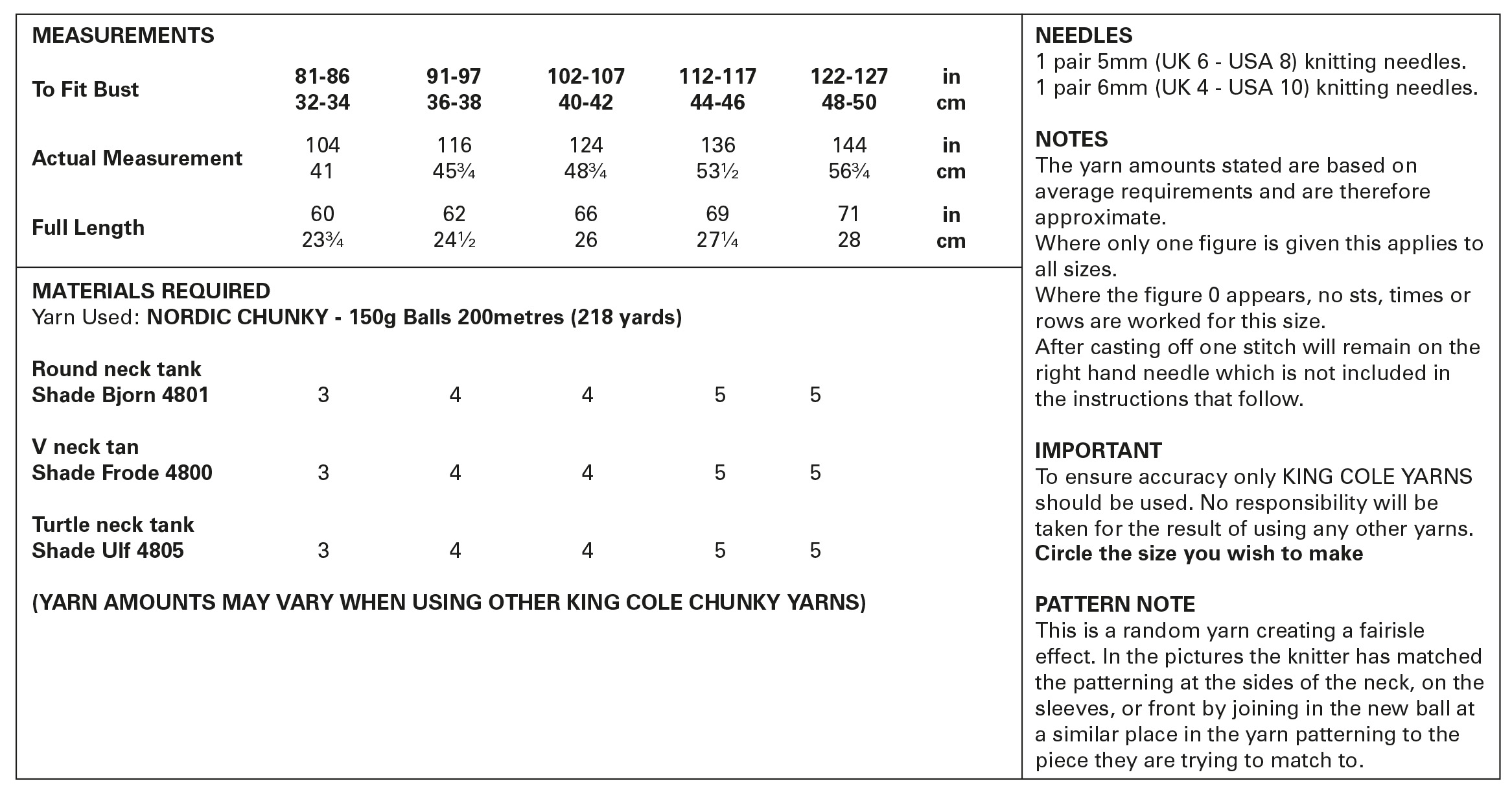 King Cole Pattern 5905 Ladies Round, V & Turtle Neck Tanks Knitted in Nordic Chunky