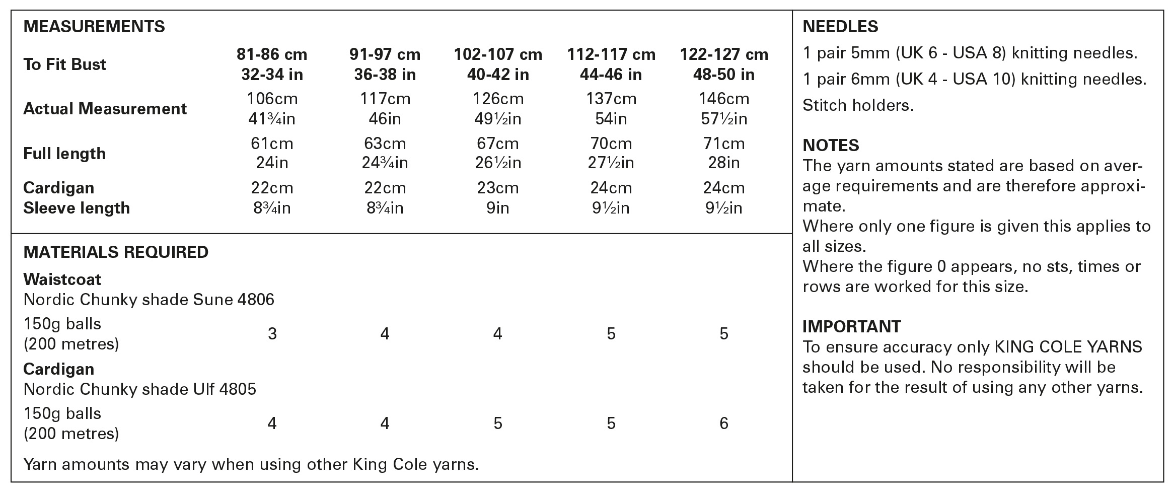 King Cole Pattern 5907 Ladies Cardigan & Waistcoat Knitted in Nordic Chunky