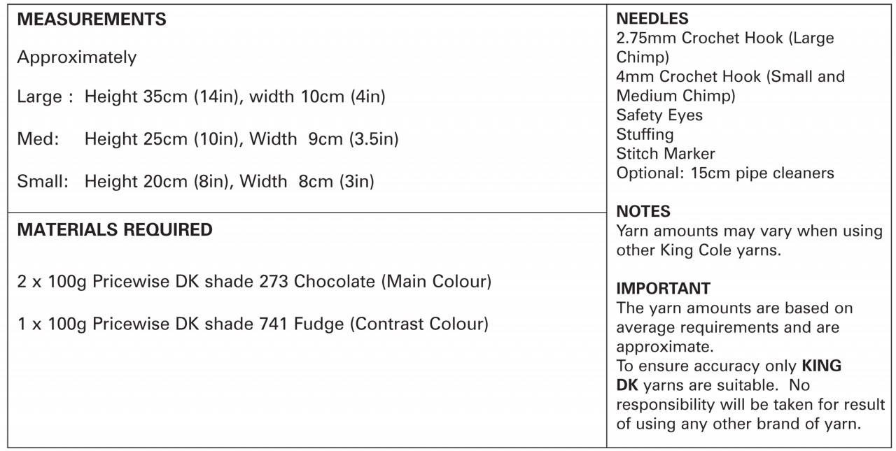 King Cole Pattern 9047 Crochet Amigurumi Chimps ?