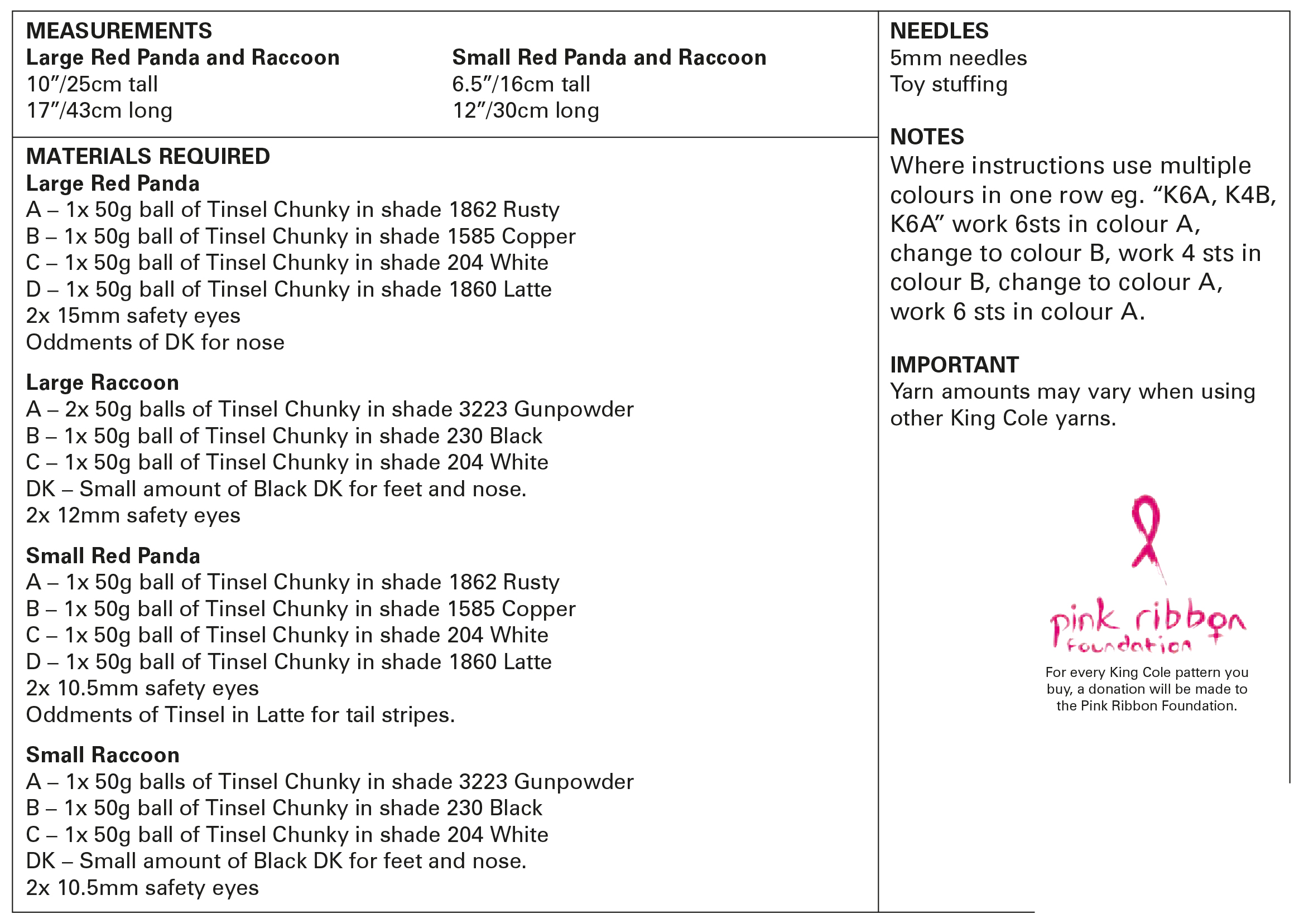 King Cole Pattern 9153 Red Panda and Racoon in Tinsel