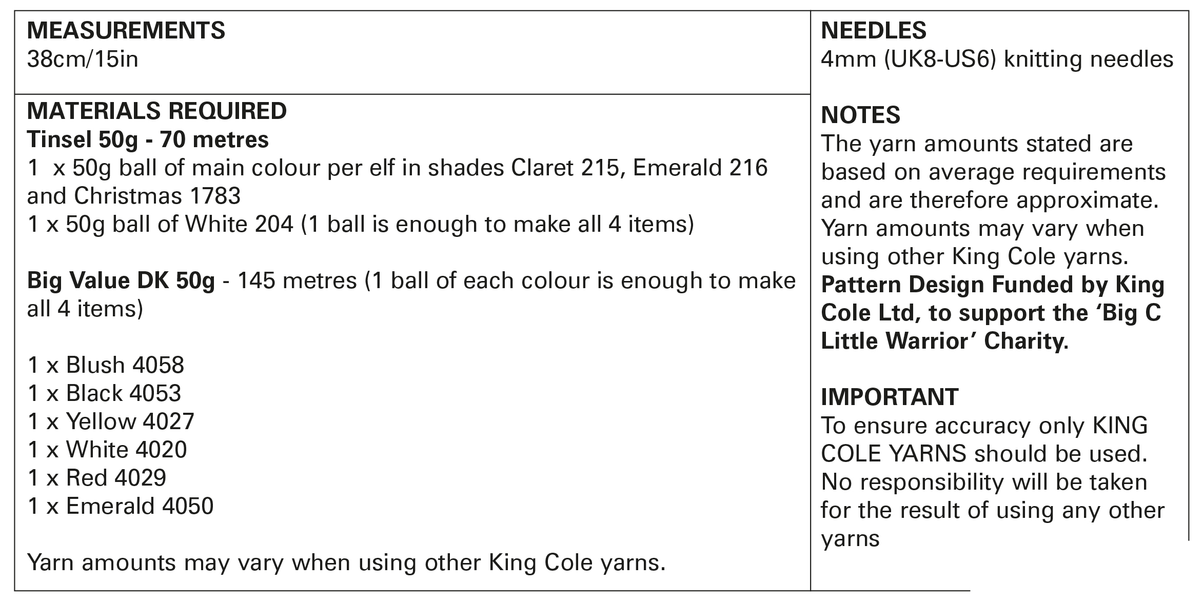 King Cole Pattern 9164 Playful Elves Knitted in Tinsel & DK