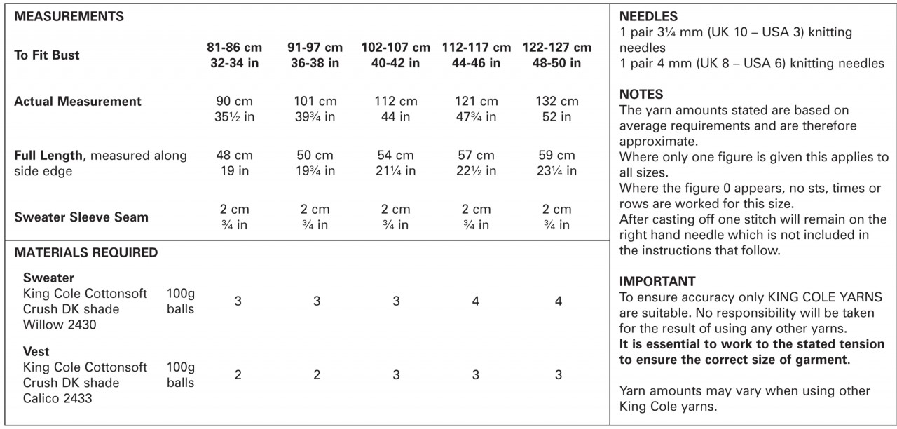 King Cole Pattern Cottonsoft Crush 4770 Ladies Sweater & Vest 81 – 127cm 32 – 50 King Cole Cottonsoft Crush 100g balls