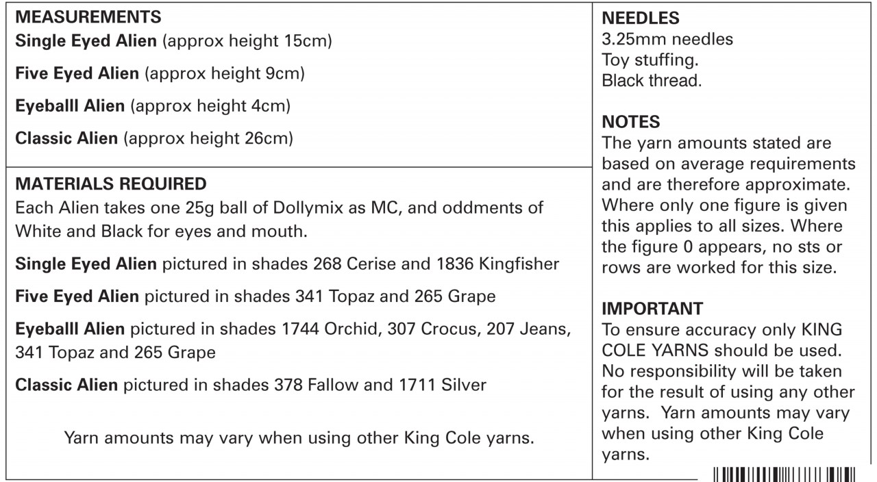 King Cole Pattern UFO2 Knitted Aliens
