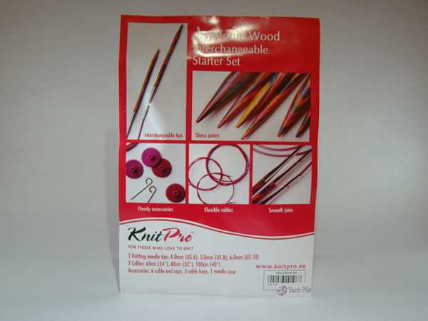 KnitPro Symfonie Starter Interchangeable set Starter interchangeable set comprising of: 3 Knitting pairs needle tips: 4.0mm (US6), 5.0mm (US8), 6.0mm (US10) 3 Cables: 60cm (24″), 80cm (32″), 100cm (40″) Accessories: 6 cable end caps, 3 cable keys, 1 needle case