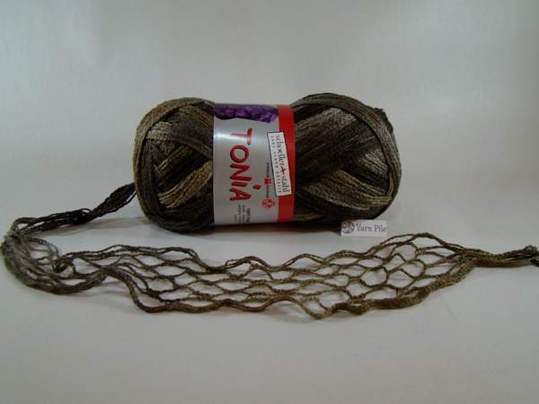 Schoeller + Stahl Tonia 157 Taupe 100% Acrylic 100 grams, 30 metres 7-8mm needles recommended Scarf Insturctions on band