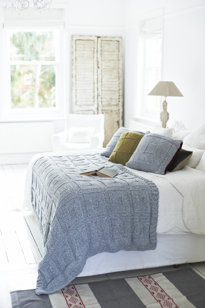 Stylecraft Nordic 8822 Throw and Cushions Throw 137 by 175 cm Cushion Covers to fit a 46cm 18in square cushion pad, actual size 43 x 43cm 17 x 17 in Balls required? Nordic 100g Throw 19 balls Square inside a Square Cushion Cover A 2 balls & B 2 balls Checkerboard Cushion Cover A 2 balls and B 2 balls Textured Stripes Cushion Cover A 2 balls and B 2 balls