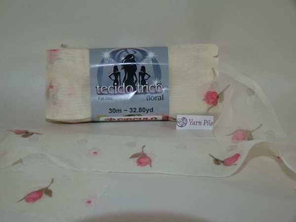 Tecido Trico by Circulo Cream with Pink Rosebud 100% Polyester 29.5 metres 4-5m (US 6-8) needles recommended Instructions for scarf on ball band 1 ball for scarf