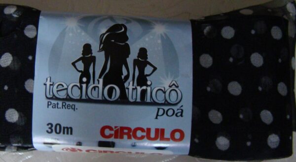 Tecido Trico Spot Black with White Spot 100% Polyester/Fast Colours 30 metres 4-5m (US 6-8) needles recommended Instructions for scarf on ball band 1 ball for scarf