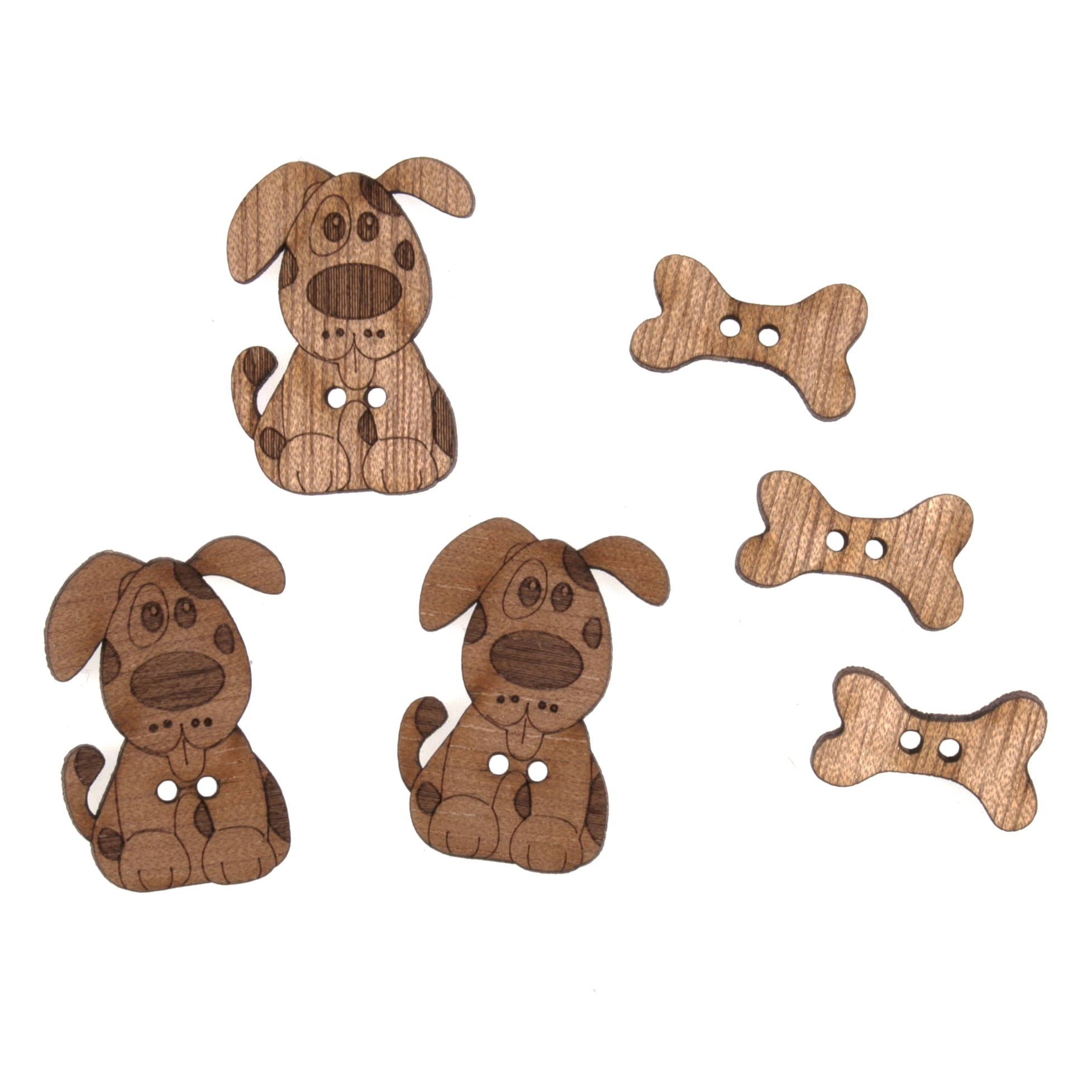 Trimits Novelty Wooden Buttons Dog & Bone Pack of 6