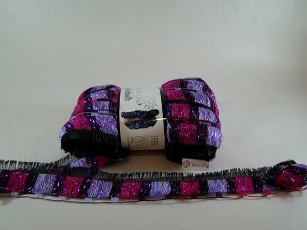 Tango Ice Red & Purple 65% Premium Acrylic 25% Polyester 10% Metallic 100 grams, 30 metres 6mm needles recommended (US8) Instructions for scarf on ball band Similar to Tango Glitz but with an additional eyelash fringe
